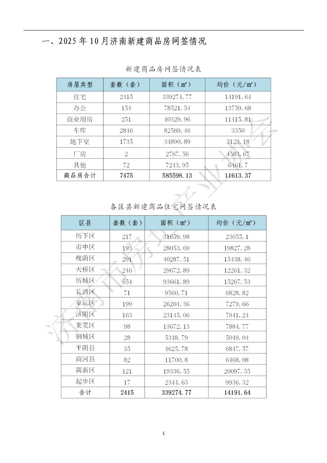 月报(2025年10月)莱芜网签98套,面积13672.13㎡,均价7884.77元/㎡