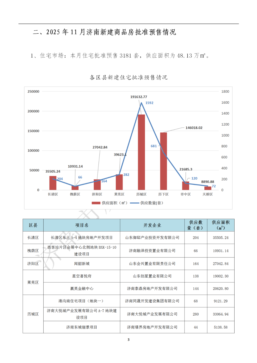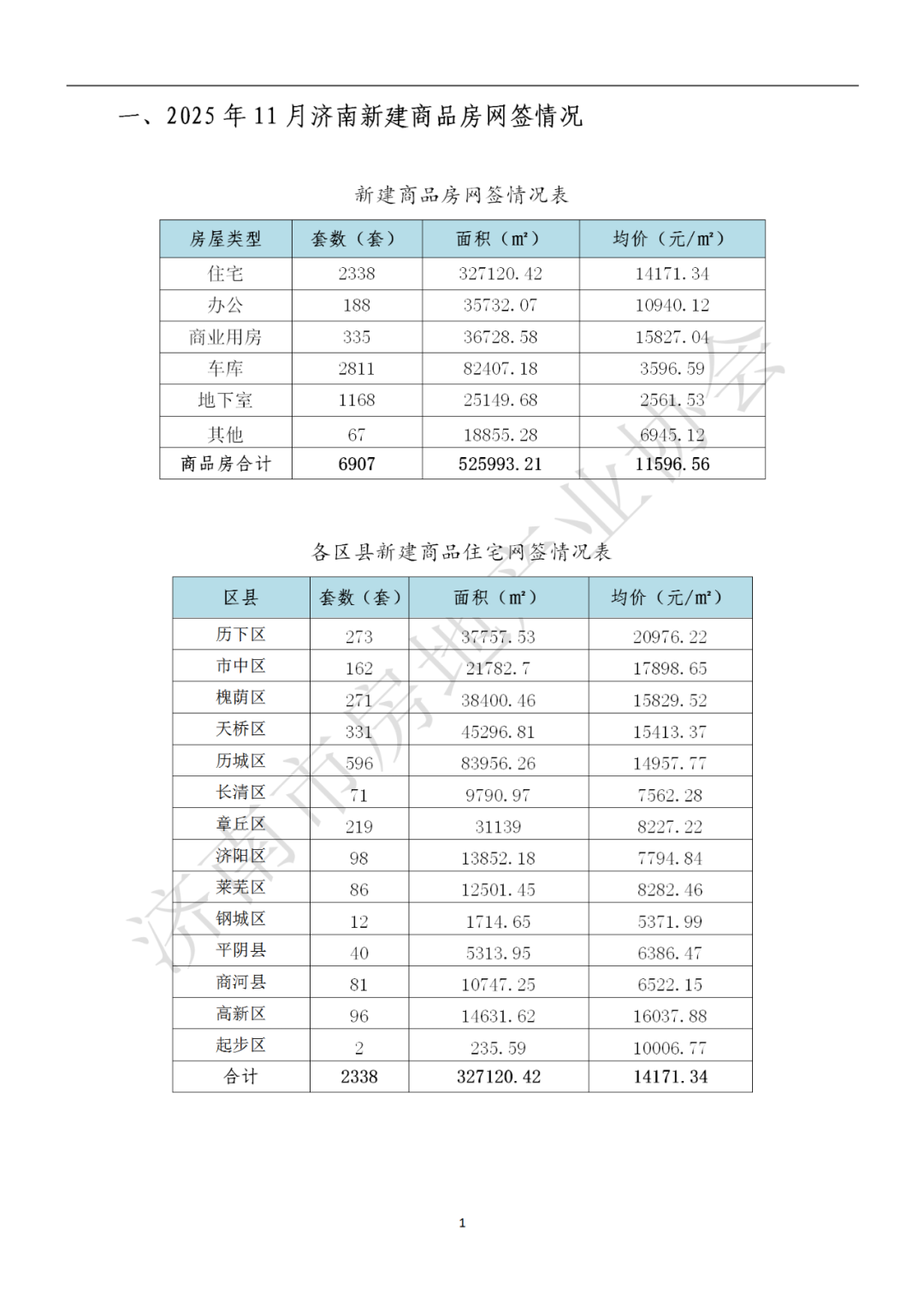 月报(2025年11月)莱芜网签86套,面积12501.45㎡,均价8282.46元/㎡
